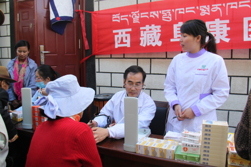 根據(jù)自治區(qū)工商聯(lián)《關(guān)于深化區(qū)直機(jī)關(guān)在職黨員到社區(qū)服務(wù)群眾活動(dòng)》的統(tǒng)一安排:阜康醫(yī)藥有限公司四個(gè)黨支部,在張德才總院長(zhǎng)的帶領(lǐng)下,一行8人在2015年8月8日上午到拉薩市城關(guān)區(qū)嘎瑪貢桑社區(qū)進(jìn)行義診活動(dòng),帶著1.5萬(wàn)余元藥品和便攜式B超,心電圖等。在半天時(shí)間內(nèi)貢義診380余人,為社區(qū)群眾進(jìn)行了測(cè)量血壓、發(fā)放藥品、健康咨詢等,受到了社區(qū)群眾的熱烈歡迎。期間正在慰問(wèn)群眾的自治區(qū)政協(xié)副主席阿沛晉源,和區(qū)統(tǒng)戰(zhàn)部副部長(zhǎng)、區(qū)工商聯(lián)黨組副書(shū)記李瑞富等領(lǐng)導(dǎo)的高度評(píng)價(jià)。