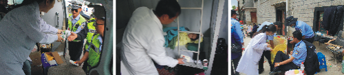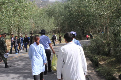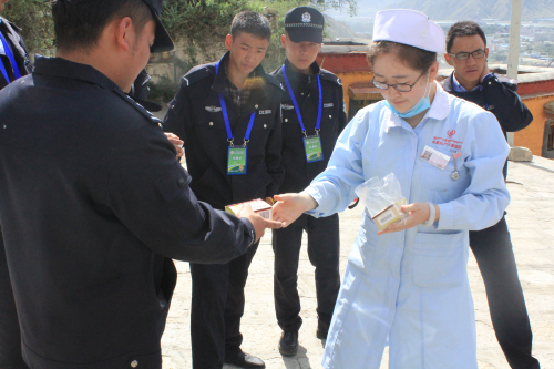 8月14日上午,阜康醫(yī)院組織起一支醫(yī)療小分隊,攜帶各種藥物與電子血壓計等醫(yī)療器械,在醫(yī)務科副主任黃川川及歐醫(yī)生等人的帶領下,奔赴哲蚌寺,步行走過寺廟各大角落,為駐守哲蚌寺各條線路的廣大執(zhí)勤民警送醫(yī)送藥,送去關懷。