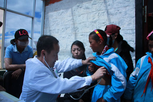 在義診現場,西藏阜康醫院心腦血管分院的醫生于永軍告訴記者,體檢中他們發現,由于條件艱苦,這里的許多孩子缺少維生素攝入,出現了臉色發黃、毛發干枯。這些癥狀正是貧血的表現,需要合理搭配飲食,多吃綠色蔬菜及含鐵量高的食物。部分老師檢查出的病情則與高寒環境有直接關系,多數老師患有高血脂等疾病。
