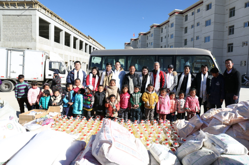 2015年12月19日,值此圣誕、新年即將到來(lái)之際,香格里拉大酒店及西藏阜康醫(yī)院部分員工乘坐滿載物資的貨車以及一輛客車,探訪了如今居住在日喀則市北郊公租房的聶拉木縣樟木鎮(zhèn)立新居委會(huì)的村民們,為經(jīng)歷災(zāi)難、過(guò)上了新生活的聶拉木縣居民們送上了節(jié)日問(wèn)候。