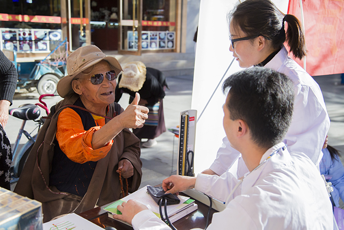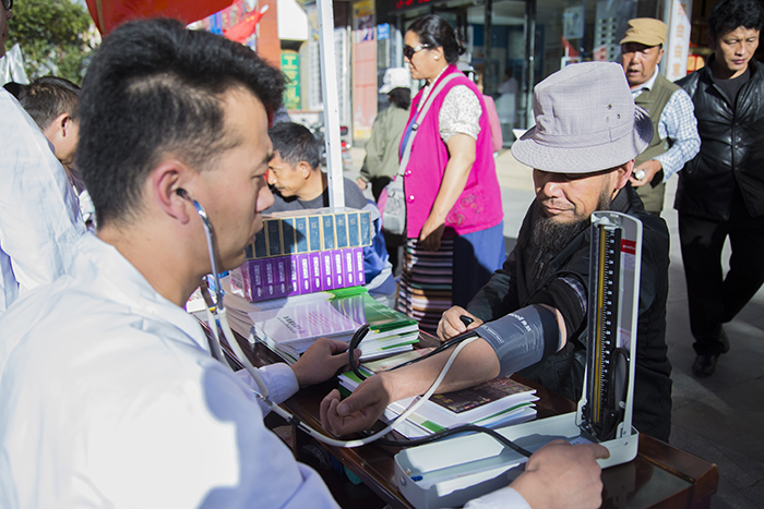 自14日早上九點活動開始,前來阜康醫藥義診宣傳點測血壓、測血糖、咨詢身體健康問題及安全用藥知識的人便絡繹不絕,整整一上午,阜康醫藥16名醫護人員都在一刻不停的忙前忙后,但能夠為廣大藏族同胞及社會群眾服務,大家都絲毫不覺得辛苦,反而發自內心的感到充實與喜悅。據活動結束后統計,本次活動西藏阜康醫藥發展有限公司免費發放各類相關資料千余份,免費發放維生素、鈣片、風濕及心腦類等藥品一萬兩千余元,免費測血壓、血糖、看病等也多達數百人次。