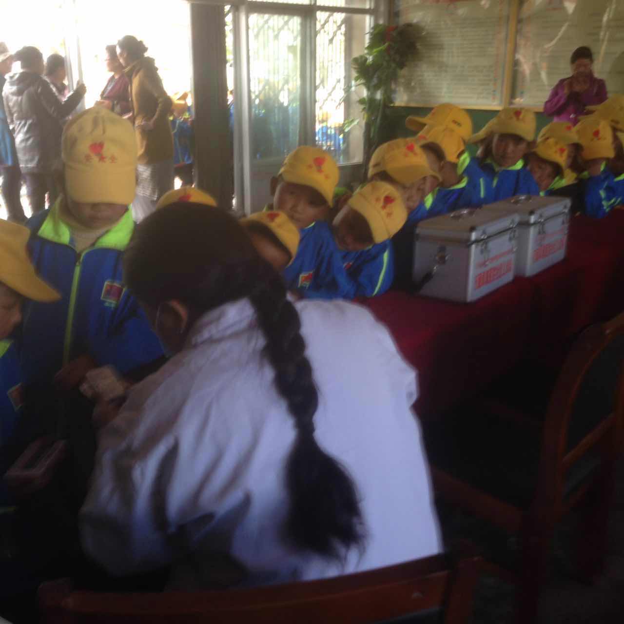 31日上午8點半左右,西藏阜康醫院社區義診隊兩名主要成員才仁、卓瑪次仁乘坐義診專用車,載著價值25000元左右的藥品,從拉薩市區出發前往墨竹工卡縣甲瑪鄉中心小學。經過1個小時40分鐘的顛簸路程,本報記者會同義診隊終于抵達目的地。盡管現場下起了小雨,但這始終沒有阻擋孩子們的熱情,甲瑪鄉中心小學的285名小學生正在學校教學樓前,耐心等待義診隊的到來。10點10分左右,孩子們在老師的引導下依次接受體檢,醫生為他們檢查了口腔、腹腔、測量心跳,并發放了藥品。一個個溫馨友善的提醒,一盒盒充滿愛意的藥品,都讓孩子們感受著全社會的關愛。