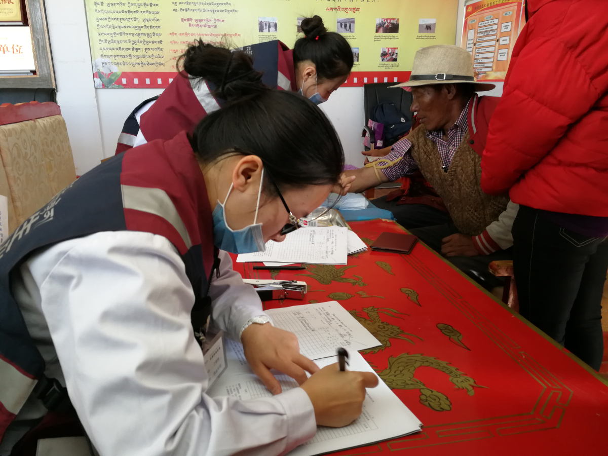 9月17日一大早,次巴珠局長開車接我們去工作點,由于是早上,局長害怕驚擾我們,他一直在門外等候,等我們走出門才發現他已經立在門口許久,這也讓我們深深感動。我們篩查的第一個區域是革吉縣革吉鎮的那普居委會農牧民,工作地點設在那普居委會。