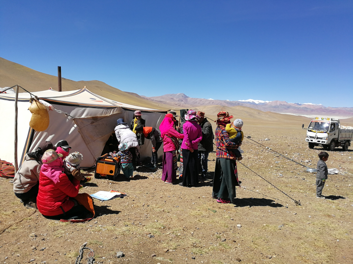 我仔細觀察四組前來的牧民,不管大人小孩,衣服都是干干凈凈的。那普居委會由李毛措主任團隊駐村管理,那普居委會是本地的示范居委會,因為政府管理得當,衛生安全普及到位,居委會傳染病、包蟲病的感染人數很少。他告訴我,牧民們要穿戴干凈、講衛生其實很難,他們要到很遠的地方才有水源,而且天氣惡劣寒冷,洗衣服都是一件困難的事情。