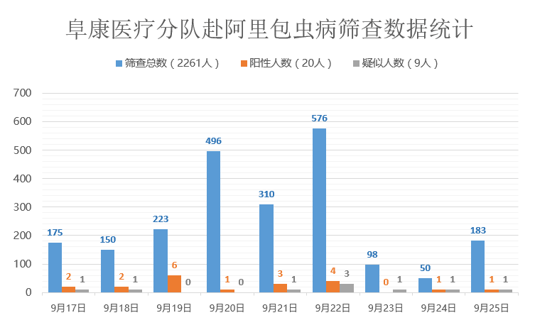 由于居民分散,9月24日阜康醫療隊驅車奔波一天,共篩查50人,發現1例陽性,1例疑似。9月25日,篩查183人,發現1例陽性,1例疑似!但是,每一次的檢查總有個別人拒絕抽血,我們的心情難以用語言表達,不知道他們出于什么原因拒絕,我們心里還是擔憂他們的健康狀況,深深地感到健康衛生知識教育仍需加強,包蟲病防治工作任重道遠,我們將砥礪前行!
