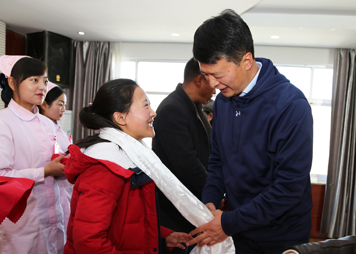 在新春佳節和藏歷新年來臨之際,為了阜康全體員工及貧困人士能過一個歡樂祥和年,西藏阜康天使基金會和西藏阜康黨委、工會開展了“助學、助困、助醫”活動。2018年2月11日,公司黨委書記王斌及相關領導、西藏阜康天使基金會秘書長吉拉女士、部分受助人士,齊聚阜康醫院婦產兒童分院四樓會議室,開展了年前慰問活動,活動由公司黨委副書記陳彬主持。