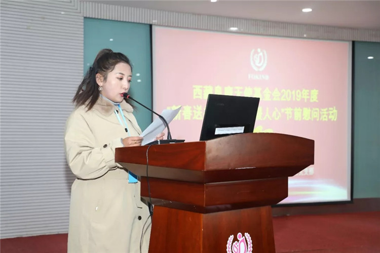 西藏阜康天使基金會秘書長吉拉帶來了阜康天使基金會創始人王斌、劉瀟瀟對困難員工的祝福和慰問,勉勵大家努力工作,與阜康共同進步,在走向幸福的路上一個都不能少,并祝大家過一個幸福快樂年!由于此次受助人員都是藏族員工,吉拉秘書長用藏語鼓勵大家積極生活、努力工作,要用一顆感恩的心回報社會。阜康天使基金會將在區黨委、政府的領導下,緊跟時代步伐,發展創新,爭取在助醫、助學、助困上幫助到更多的人。