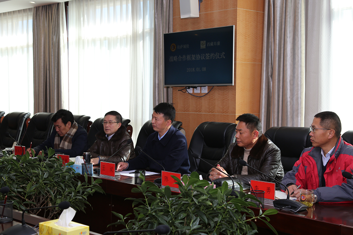 新年伊始,作為2018年首個混合經濟發展項目,拉薩城投公司和西藏阜康醫療股份有限公司在城投大廈簽訂戰略合作協議,拉薩城投公司黨委書記兼董事長多吉旺久先生、副書記兼副總經理格桑央宗女士、阜康醫療股份有限公司黨委書記兼董事長王斌、副書記兼總經理陳彬、阜康醫院總院長孫貴林、業務院長歐珠羅布、董事會秘書李勇出席了簽約儀式。