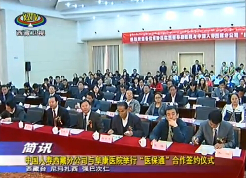 西藏阜康醫院與中國人壽保險股份有限公司西藏自治區分公司近日舉行了“醫保通”系統服務合作簽約儀式。