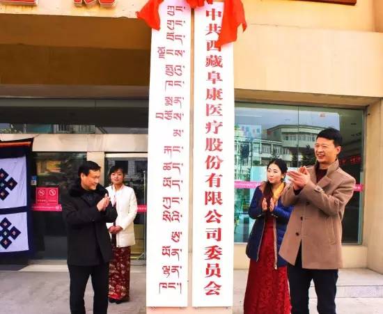 2016年1月20日下午16時,中共西藏阜康醫療股份有限公司黨委會成立揭牌儀式在阜康婦產兒童醫院隆重舉行,應邀參加揭牌儀式的領導有自治區統戰部副部長、區工商聯黨組書記、區非公黨工委常務副書記李瑞福同志一行五人,我公司黨委書記王斌同志、黨委專職副書記敖德秀同志、黨委副書記張德才同志、黨委紀檢委員陳彬同志及四個黨支部成員等68人參加了此次儀式。