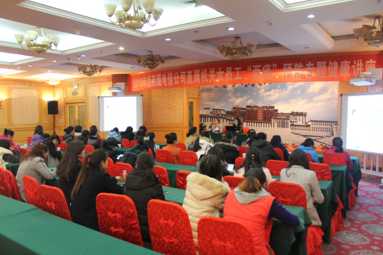 2016年3月7日下午,在三八婦女節即將來臨之際,我院李君副院長受邀于西藏電信公司及中國郵政儲蓄銀行西藏自治區分行進行女性健康知識、備孕二胎媽媽孕前檢查及“兩癌”篩查健康知識講座,并就女性“宮頸癌”、“乳腺癌”兩大癌癥預防篩查等健康知識作出詳細講解。