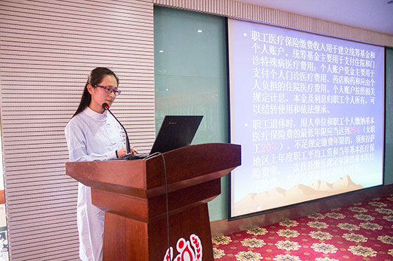 在隨后的醫(yī)保知識培訓中,醫(yī)保辦張燕平同志為新入職的臨床工作人員仔細講解了包括基本醫(yī)療保險、門診特殊病、大額醫(yī)療費商業(yè)補充保險、拉薩市醫(yī)療救助“一站式”即時結算服務、新農合等有關醫(yī)保方面的專業(yè)知識,以方便臨床醫(yī)務工作者在以后的各項實際工作中能與醫(yī)保進行很好的銜接,從而提高醫(yī)院醫(yī)保基金安全使用率,遏制醫(yī)療費用的不合理增長,維護參保人員的合法權益,促進各項醫(yī)療保險制度更加穩(wěn)妥、有序地發(fā)展。
