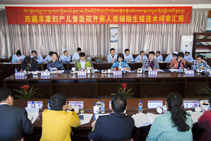 2016年8月19日上午10時許,西藏阜康婦產兒童醫院人類輔助生殖技術評審匯報會在西藏阜康婦產兒童醫院四樓會議室正式開評,孫瑩璞、范立青、趙永平、翁寧、 林戈、呂杰強、朱文兵等7位國家衛計委專家庫專家蒞臨我院進行評審。扎西旺姆、次仁、姜海燕、匡雪蓮、劉貝貝、葉曉梅、次仁白珍、遲洪濱、劉中娟等9位自治區、拉薩市衛生計生委的領導;西藏大學高原醫學研究中心主任、西藏阜康婦產兒童醫院生殖倫理委員會主任歐珠羅布;西藏阜康婦產兒童醫院董事長王斌、8位院領導以及我院生殖中心各相關人員等參加了本次評審匯報會。