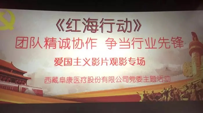 三月,春回大地、萬物復蘇,西藏阜康醫療股份有限公司黨委開展了以“團隊精誠協作,爭創行業標兵”為主題的觀影活動,公司黨委組織了全體黨員、干部140余人,于3月25日下午19:40分在拉薩全美影院集中觀看愛國主題片《紅海行動》,深入開展愛國主義教育,引導黨員干部認真學習軍人對祖國、對人民、對黨絕對忠誠的品格和勇于奉獻的愛國主義精神,以及為了一個共同的目標相互協作、團結一致的團隊精神。