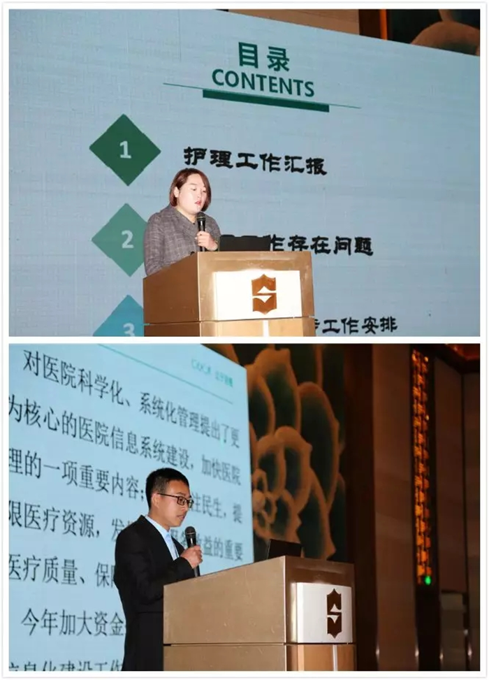 護理部主任王青青從“護理人員結構情況”、“進修情況”、“工作量”、“科室管理”、“信息化建設”等十一個方面進行了護理工作匯報,表示在第四季度的工作中將繼續落實責任制護理工作,嚴格執行“三查十一對”制度,不斷優化護理流程、提升整理護理質量;信息科主任王海濱匯報顯示:全院信息化工作持續推進,現已建成運行的有醫院信息化中心機房、云體檢管理系統、云EMR電子病歷管理系統、輸血管理系統、手術室管理系統、血液透析管理系統等。信息科將針對新系統上線中的各種問題加快解決處理速度,不影響科室的正常運作。