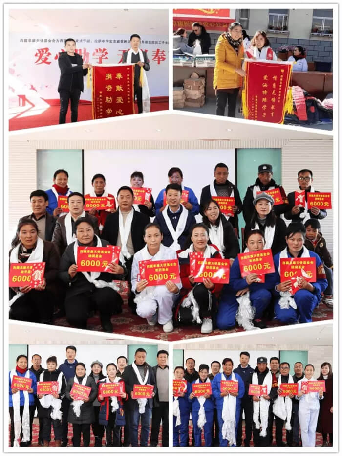 2018年2月11日,西藏阜康天使基金會(huì)和西藏阜康醫(yī)院黨委、工會(huì),在新春佳節(jié)來臨之際慰問困難群眾和員工,根據(jù)困難程度分別發(fā)放6000元、12000元、60000元不等的慰問金。同年11月,“西藏阜康天使基金會(huì)助學(xué)助醫(yī)捐贈(zèng)儀式”在阜康婦產(chǎn)兒童分院舉行,在本次捐贈(zèng)儀式上,西藏阜康天使基金會(huì)為西藏大學(xué)政法學(xué)院30名貧困學(xué)生,每人捐助4000元的生活補(bǔ)貼,總金額為120000元人民幣。通過這些幫扶活動(dòng)幫助了貧困員工、貧困群眾和學(xué)生走出困境、重塑生活,為他們生活注入了新的希望。