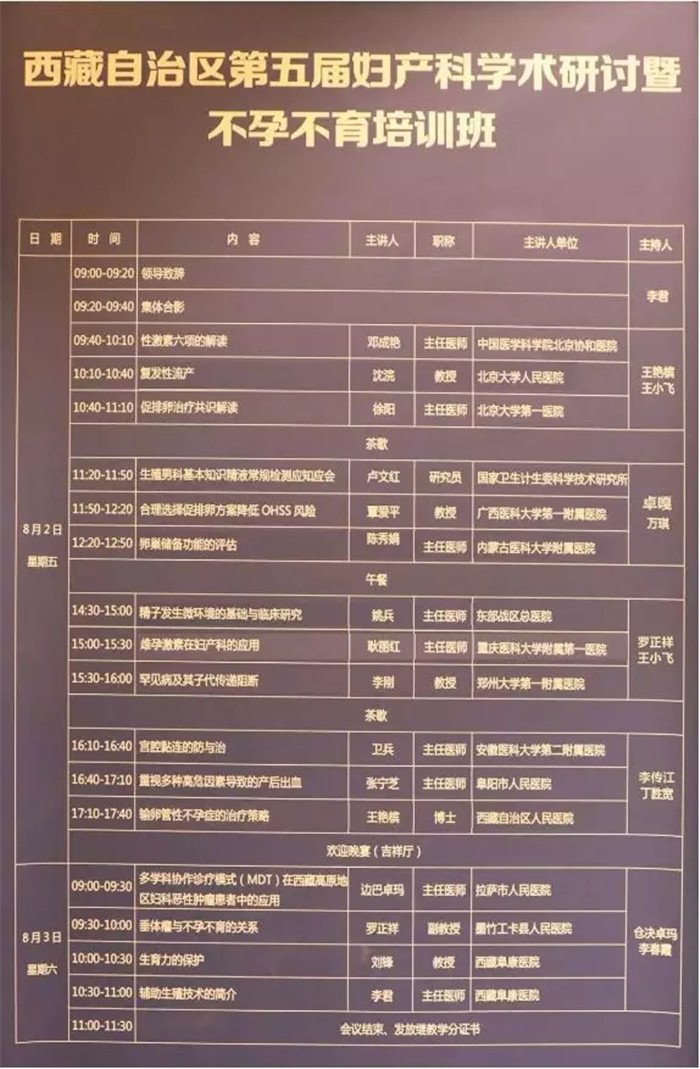 西藏自治區第五屆婦產科學術研討會暨不孕不育培訓班日程安排