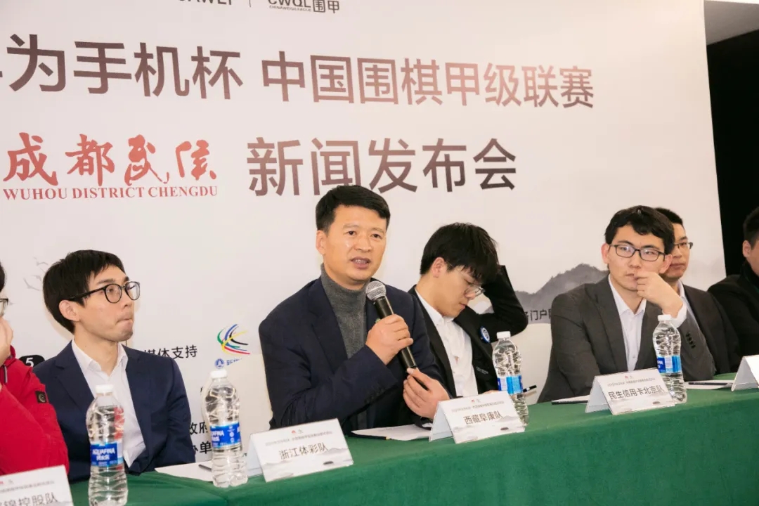 7日晚,2020華為手機杯中國圍棋甲級聯賽第二階段成都武侯分站賽第十輪賽后發布會于成都東方美豪麗致酒店舉行。中國圍棋協會副主席、棋圣聶衛平,中國圍棋協會副主席、國家圍棋隊總領隊華學明及第十輪勝出的八支棋隊的代表出席了發布會。拉薩棋院院長、西藏自治區圍棋協會主席、西藏阜康隊領隊王斌出席會議并代表發言。