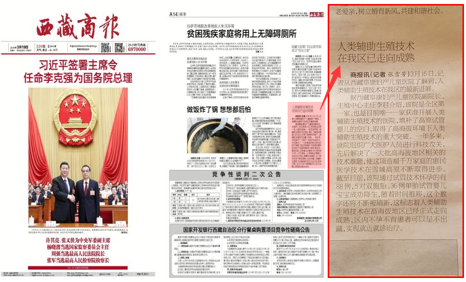 據西藏阜康婦產兒童醫院副院長、生殖中心主任李君介紹,該院是一家獲準開展人類輔助生殖技術的醫院,取得了高海拔環境下人類輔助生殖技術的重大突破。一年多來,該院組織廣大醫護人員進行科技攻關,先后解決了一大批高海拔地區相關的技術難題,使這項造福千萬家庭的惠民醫學技術在雪域高原不斷取得進步。截至目前,該院通過試管技術懷孕的有88例,5對雙胞胎、36例單胎寶寶成功降生,隨著時間推移,這個數字還將不斷被刷新,這標志著人類輔助生殖技術在高海拔地區已經正式走向成熟,區內不孕不育患者可以足不出藏,實現就近就診治療。