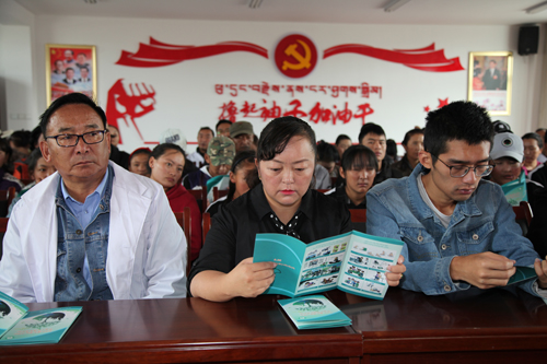 圖為自治區殘聯黨組成員、副理事長拉姆卓瑪(中)參加“殘疾預防進社區”活動