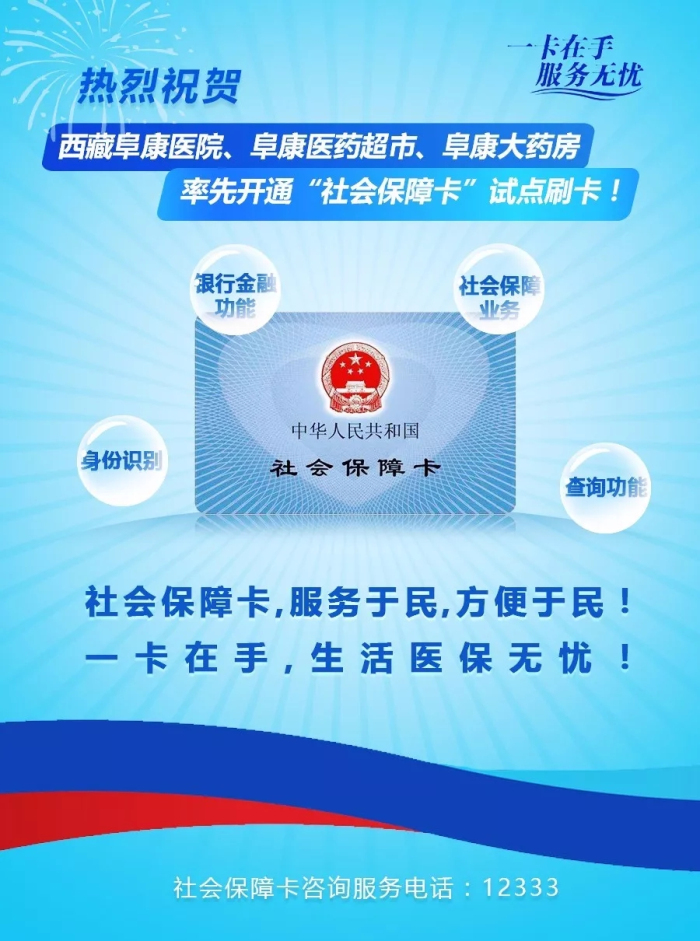 西藏阜康醫(yī)院、阜康大藥房、阜康醫(yī)藥超市可用新版社保卡啦!