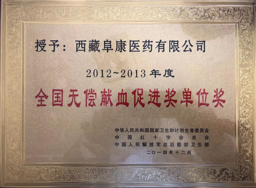 2012-2013年度 全國無償獻(xiàn)血促進(jìn)獎(jiǎng)單位獎(jiǎng)中華人民共和國國家衛(wèi)生和計(jì)劃生育委員會(huì)