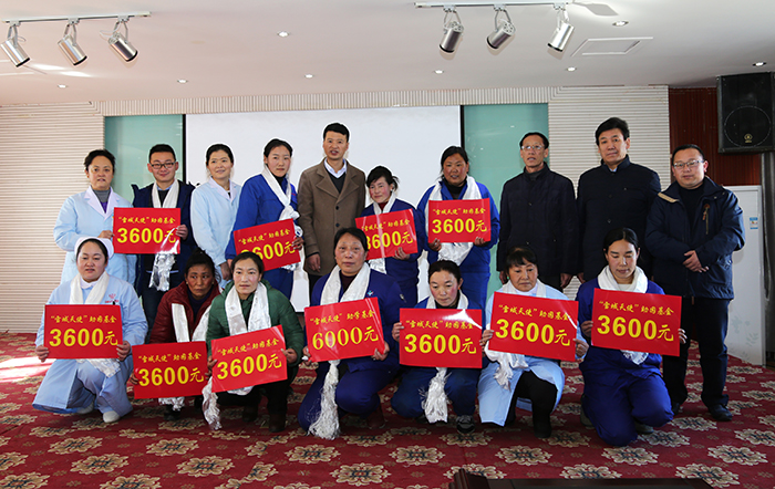 本次活動由公司黨委青年兼宣傳委員喬倩同志主持,公司黨委書記王斌同志、黨委副書記敖德秀同志、阿旺建才副院長、李君副院長、歐珠羅布副院長、財務總監朱江等院領導、三家醫院部分黨員及16位受助員工參加。