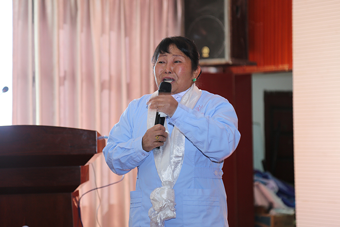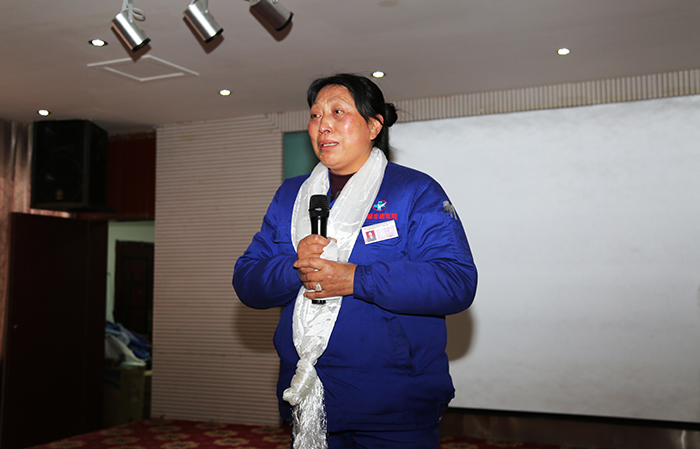 受助員工代表昂旺桑姆激動地表達了對公司對王總的感謝,她表示,自己家里的狀況對很多親戚朋友來說可能是個拖累,很多親戚朋友都因此疏遠自己。但在阜康,因為王總及其夫人劉瀟瀟創辦的雪域天使基金會的幫助,讓自己的女兒能夠順利上大學。是阜康,是王總給自己家帶來了一份新的希望。