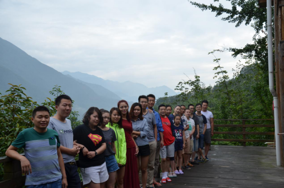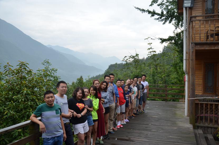2016年8月25日,在精心的策劃準備后,全體員工向距離成都70多公里的都江堰市虹口鄉出發,錯開出行高峰期,很快就到達了都江堰市區,再經過近10余公里的綿延的盤山路,車隊首先到達虹口區山頂(虹口區是著名的原生態保護區),雖然已是沉陽,但一陣陣清新的空氣仍伴隨習習微風撫面而來,久違了美麗的群山,大家在山頭稍作停息,眺望云霧環繞的眾山,心曠神怡,不斷的拍照留念,捕捉這心動的一刻。