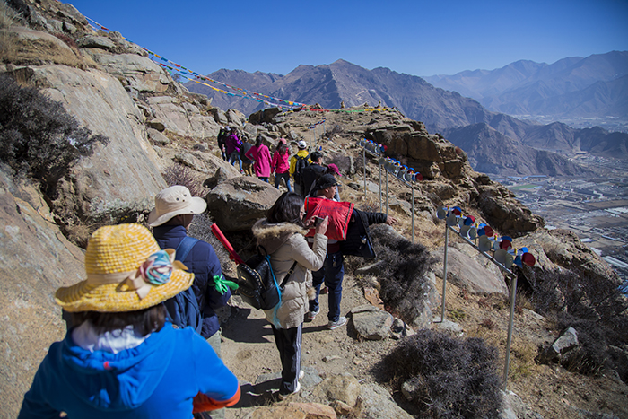 為保證參加活動人員的人身安全,支部對參加人員著裝、隨身攜帶物品等做出了明確規定,所有人從阜康婦產兒童分院集合統一出發驅車前往色拉寺。我們將人員分為三隊,為保證體力給大家發放了水果、水、巧克力等,同時還給帶隊的小組長分發了垃圾袋,鑒于西藏脆弱的生態環境,為保護大山環境,我們要求所有人員把爬山過程中產生的垃圾,和以前轉山者遺留下的垃圾一并帶走,為環境保護貢獻自己微小的力量。