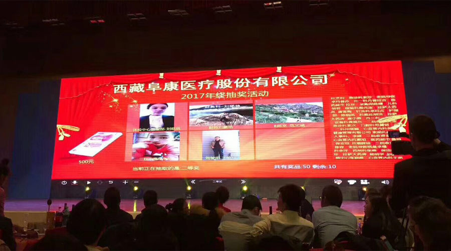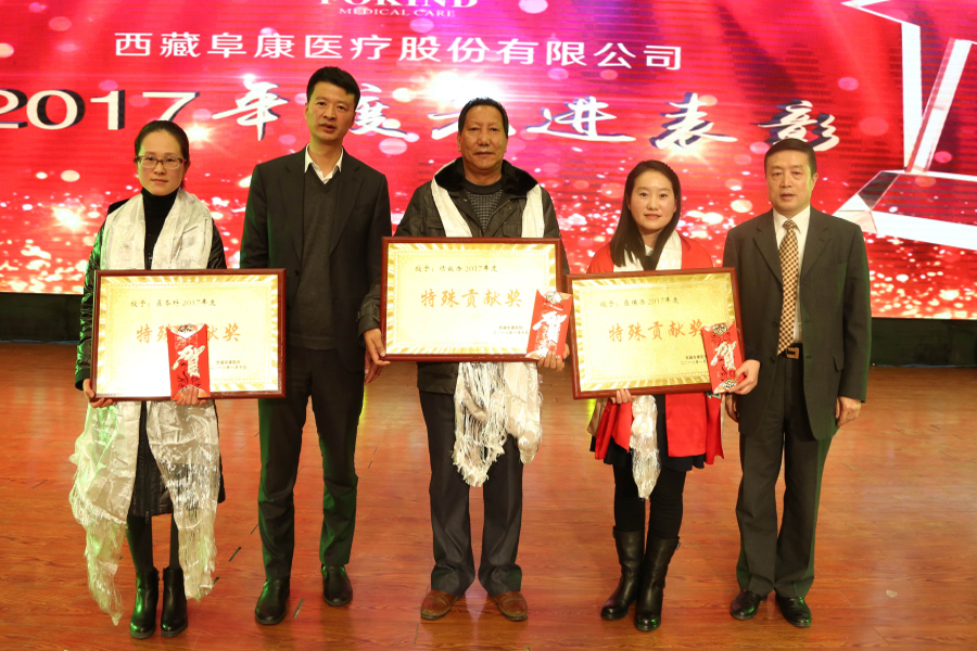 2018年1月10日,西藏阜康醫療股份有限公司新年團拜會在拉薩洲際酒店舉行,下午四點來自西藏阜康醫院、婦產兒童分院、心腦血管分院、健康體檢中心,阜康大藥房、超市的員工陸續來到會場。下午五點,主持人劉連福院長宣布會議正式開始,場內音樂響起,董事長王斌帶領醫院領導和特邀嘉賓入場,會場立刻響起雷鳴般的掌聲和歡呼聲。