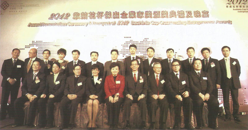 “2012年紫荊花杯杰出企業家獎”的頒獎典禮正在進行,主禮嘉賓香港特別行政區立法會主席曾鈺成先生,特邀嘉賓中央港理工大學校長唐偉章先生共同啟動了2012紫荊花杯杰出企業家獎亮燈儀式。曾鈺成先生發表了熱情洋溢的講話,他對12位中國內地的獲獎企業家表示祝賀,為此次海內外民營企業家的盛會開啟序幕。