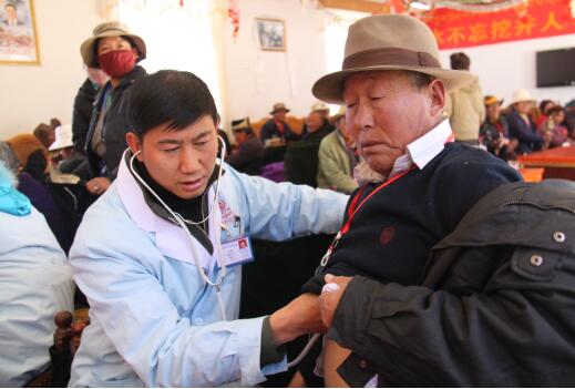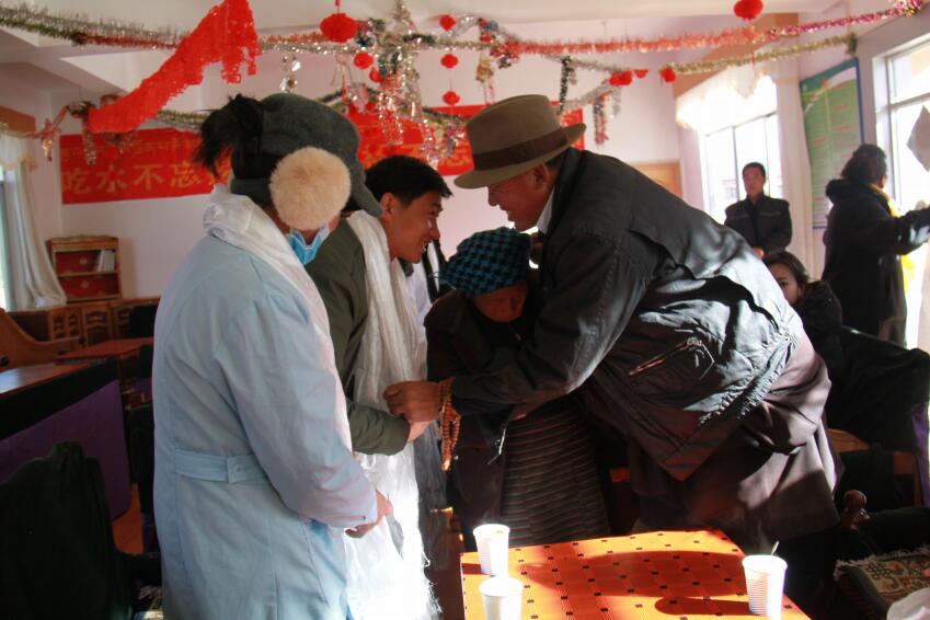 下午,我們又來到墨竹工卡縣扎西崗鄉敬老院,對老人進行義診。當天,我們一共對300位老人進行了免費體檢,發放了價值10000余元的藥品。