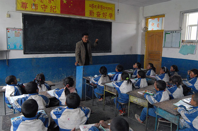 米瑪老師說,他出生在日喀則市亞東縣城,自幼家庭條件較好。自初中開始,他便先后在濟南、咸陽等內地大中城市求學,早已習慣了城市的生活和思維方式。2002年大學畢業(yè)被分配到日喀則定日縣崗嘎鎮(zhèn)東巴完小工作。