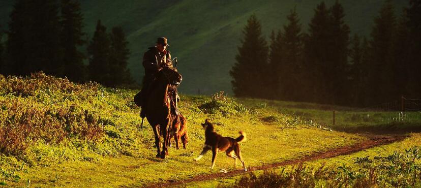 它是合格的“親衛隊長”。它有敏銳的聽覺,總是在半里地外就能準確區分陌生人或是熟人的腳步聲,然后決定是咆哮著發出警告還是搖著尾巴上去撒歡兒。那時侯,家里養著大群的麻鴨,落日西沉的時候總有幾只流連田野,不愿歸家。它會跑過去,趕著它們全數回到竹籬圍成的圈里。或者是到了秋天,地里有各種成熟的瓜果,它便不再回到我們在屋檐下為它搭的窩里睡覺,只在田間找一處茂密的草叢,夙興夜寐,防著過路人貪婪的手。