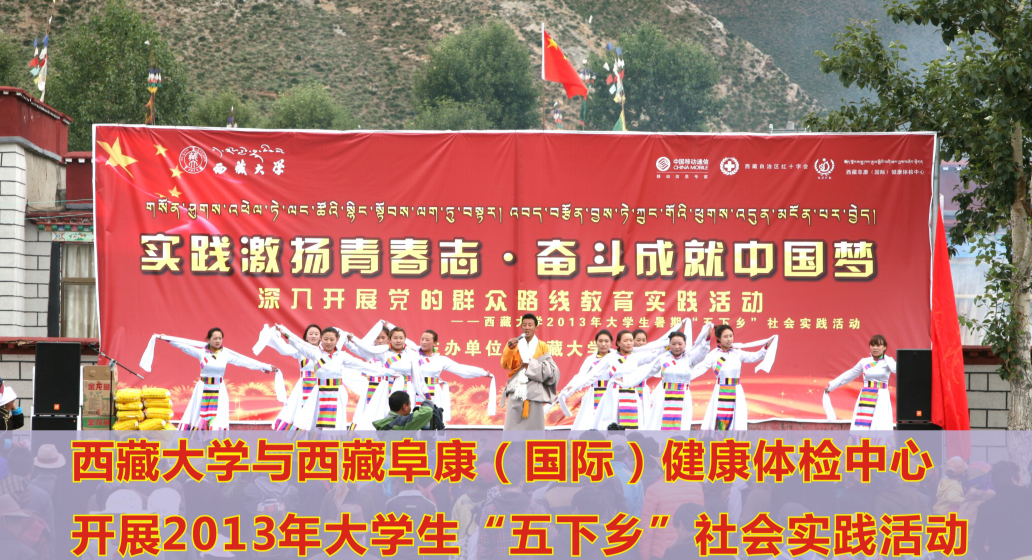 2013年西藏大學(xué)“五下鄉(xiāng)”社會實踐活動以"實踐激揚青春志。奮斗成就中國夢- -一 深入開展黨的群眾路線教育實踐活動”為主題,旨在深入貫徹落實習(xí)近平總書記“治國先治邊,治邊先穩(wěn)藏”的重要指示精神及自治區(qū)黨委八屆四次全委會精神,緊緊圍繞保持黨的先進(jìn)性和純潔性,以中央“八項規(guī)定”為切入點,深入開展黨的群眾路線教育實踐活動,切實改變工作作風(fēng),進(jìn)一步鞏固和擴(kuò)大黨執(zhí)政的群眾基礎(chǔ),以中國夢、青年夢、實踐夢激勵青年學(xué)生勇于實踐、不斷探索,在建設(shè)“六個西藏”和實現(xiàn)中華民族偉大復(fù)興中國夢的偉大實踐中奮發(fā)成長成才。
