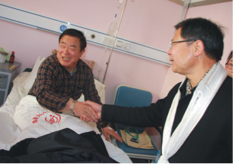 每年春節及藏歷新年院領導都會親自帶隊慰問病人,這已成為“阜康”與患者間特有的一種情感交流。一聲聲真誠的祝福、一陣陣爽朗的笑聲,描畫出- -幅和諧的醫患關系圖。
