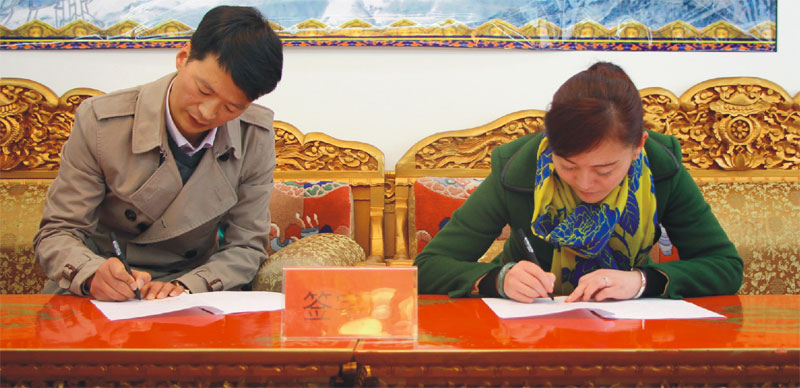 4月24日下午西藏阜康醫院與拉薩市民政局以及七縣一區民政部門負責人現場一一蓋章簽訂醫療救助“一站式”即時結算服務協議書。西藏阜康醫院董事長王斌先生在協議書簽定會上為解決困難群眾看病就醫做出了堅定的承諾。