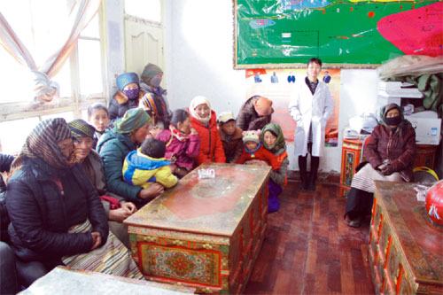 2014年4月12日,阜康集團旗下阜康婦產兒童醫院、阜康心腦血管分院、西藏阜康(國際)健康體檢中心的醫護人員由婦科專家尼瑪醫生帶隊,攜帶價值5千余元的婦科、內科常用藥品,走進美麗的林周縣松盤鄉拉木村,為當地居民開展免費體檢、送醫送藥、健康宣講活動。