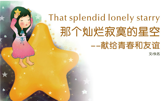 等濃霧散去后,就可以看到最美麗的星空了。”我們是否也能像他們一樣,跳進那滿天的星海里,頭枕著星星,卻看見燦爛的陽光。我不知道,有陰影的地方,是否必定有光。仰望星空,我還是愿意相信,你或者其他人,曾經,正在從世界的某個地方向我走來。