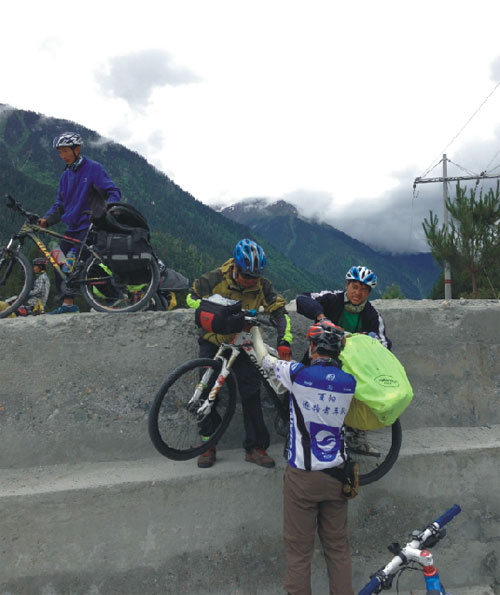 從陵園出來不久,得知那個女隊友還是堅持騎行,于是我返回去接她,陪她一起騎行。當我在路上碰到她的時候,她笑著問我為什么不在前面等。要多走這么一段路。我說我害怕孤單所以找你陪我一起,她感動得什么也沒說。這一天我們互相幫助通過了一段好幾公里的落石區。
