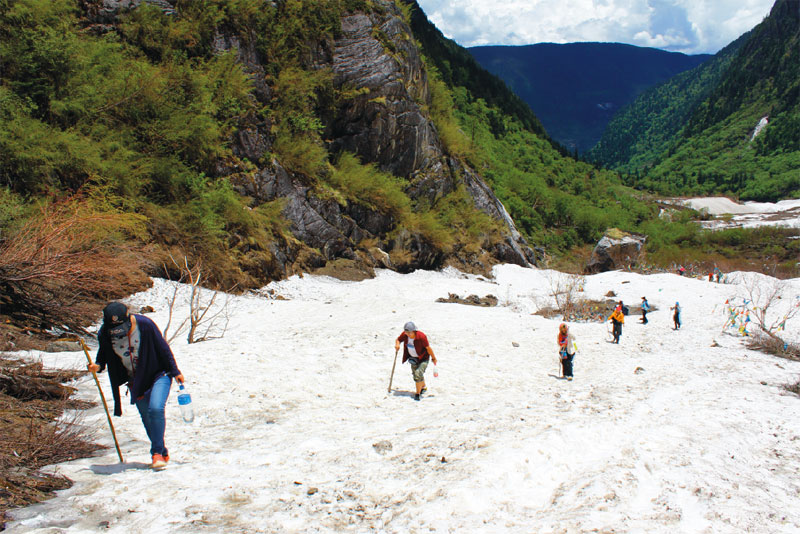 益西是從客棧出發后兩個小時到達的一處二十多米高的塌方區摔下去的,與她結伴的張見她滑落后,毫無猶豫也抱著頭跟著跳了下去。最后在塌方區的底部找到了已半昏迷狀態的益西,不知道他們倆是怎么攙扶著從崖下爬上大路的,又是如何拖著傷痛的身子在崎嶇蜿蜒、凹凸不堪的山路河溝走了兩個小時走回客棧的。