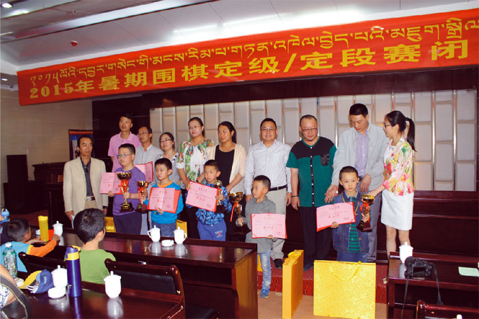拉薩市2015年暑期圍棋定級/定段賽于7月26日正式拉開帷幕,比賽采取“循環積分制”,40名參賽選手經過兩天的比拼,最終由彭子杰、任天澤、陳浩分別榮獲定級/升級賽前三名,常新昊、許蘇陽、肖墨愷分別榮獲定段/升段賽前三名。