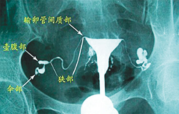 子宮輸卵管造影(HSG)是推薦常用的輸卵管通暢度檢查的方法。通過造影管向宮腔內及輸卵管注入造影劑,在X線透視下觀察造影劑通過宮腔及輸卵管情況并攝X光片,了解輸卵管是否通暢和宮腔形態,準確率可達80%。造影劑包括油劑(碘化油)、水溶性(泛影葡胺、碘海醇)。碘化油密度大,顯影效果好,對于輸卵管還有一定的治療作用。