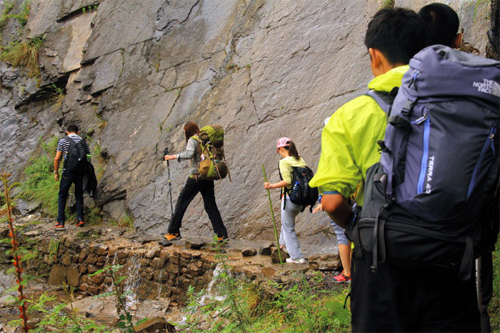 早餐是一大碗雞蛋面,我夾了好多給新疆的大哥,其實過螞蝗區后,只要一吃東西真的不由自主就會有反胃的感覺,不逼著自己真是什么也吃不下。但走在路上,最重要的就是食物和水。不得不吃!