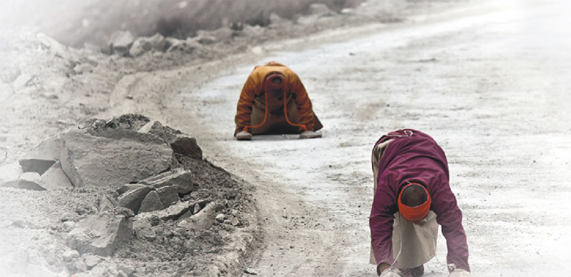 這是快樂美好的七個月,這七個月我們度過了拉薩舒適的夏季、絢麗的秋天、干燥而陽光燦爛的冬季,領略了雪域高原的大美風光和藏區神圣的宗教人文景觀。五彩的經幡在湛藍的天空下飄揚、清澈見底的高山湖泊在明媚的陽光下泛著七彩的波光,高聳入云的雪山讓人仰望;喇嘛紅衣、匍匐在朝圣路上的信徒,在西藏這片熱土上屹立著堅定的信仰。我不懂他們,我只是靜靜看著他們,在目光相遇的時候,給一個微笑,我便得到了發自心底的快樂、滿足和信任。在他們面前,一切都變得簡單、虔誠、付出也是一種快樂。認識了車隊的巴次,知道了巴次的一些故事,留心著他的言行,我知道了一個普普通通的藏族青年,有著佛一樣的慈悲心,他就那樣付出著、快樂著……我被感動著,感染著。