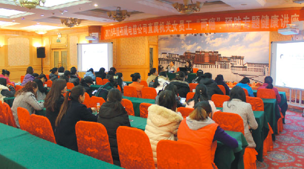2016年3月7日下午,在“三八婦女節(jié)”即將來(lái)臨之際,我院李君副院長(zhǎng)受邀于西藏電信公司及中國(guó)郵政儲(chǔ)蓄銀行西藏自治區(qū)分行進(jìn)行女性健康知識(shí)、備孕二胎媽媽孕前檢查及“兩癌”篩查健康知識(shí)講座,并就女性“宮頸癌”、“乳腺癌”兩大癌癥預(yù)防篩查等健康知識(shí)作出詳細(xì)講解。受到了在場(chǎng)學(xué)員的一致好評(píng)。