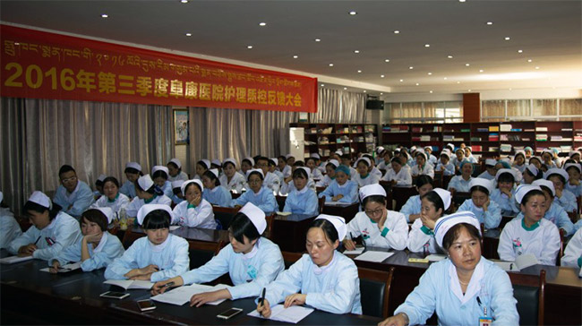 2016年9月23日下午16點(diǎn)整,西藏阜康醫(yī)院2016年第三季度護(hù)理質(zhì)量反饋大會(huì),在阜康婦產(chǎn)兒童分院四樓會(huì)議室進(jìn)行。阜康醫(yī)院、阜康婦產(chǎn)兒童醫(yī)院、阜康心腦血管醫(yī)院及阜康體檢中心全體護(hù)士共130人參加了本次會(huì)議,會(huì)議由敖德秀總院長(zhǎng)主持,在會(huì)議上院長(zhǎng)就2016年我院護(hù)理質(zhì)控工作中存在的問題進(jìn)行了分析并提出對(duì)策。